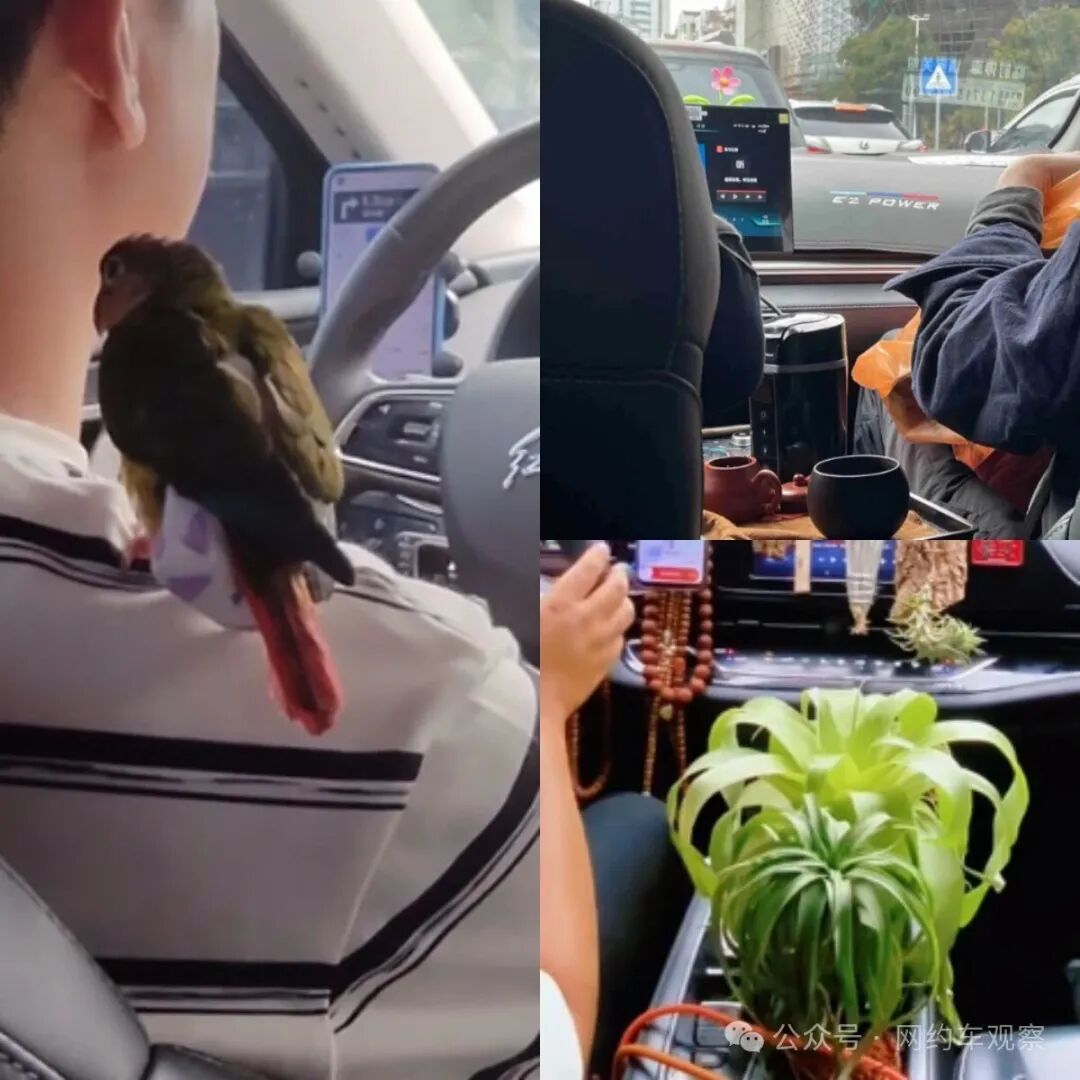 对这样熬时长的做法,很多司机也表示不赞同。该跑跑,该休息也得休息,没单就休整,有单也不用拼命卷,身体和开心都重要。于是很多司机跑车之余也不忘兼顾个人爱好,有抽空品茶的,有带鸟上班的,还有车内养点小绿植的,乘客晒出司机的各种松弛感操作,展现出满满的热爱生活的气息。
