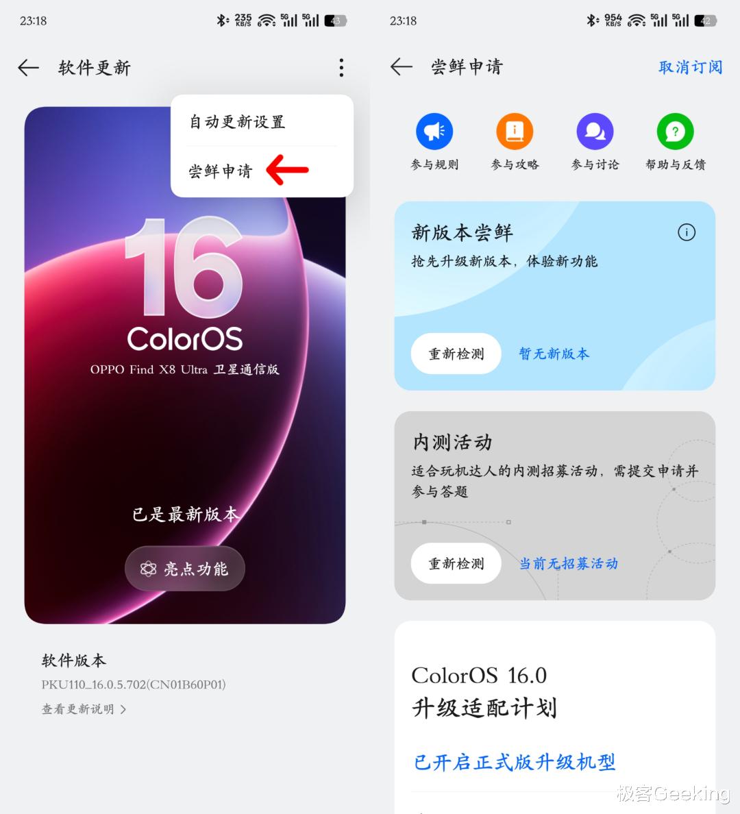 首批内测机型支持 OPPO Find X9、Find X9 Pro/卫星版和一加15 共 4 款机型,现已面向此前申请报名并通过审核的用户开启陆续推送。