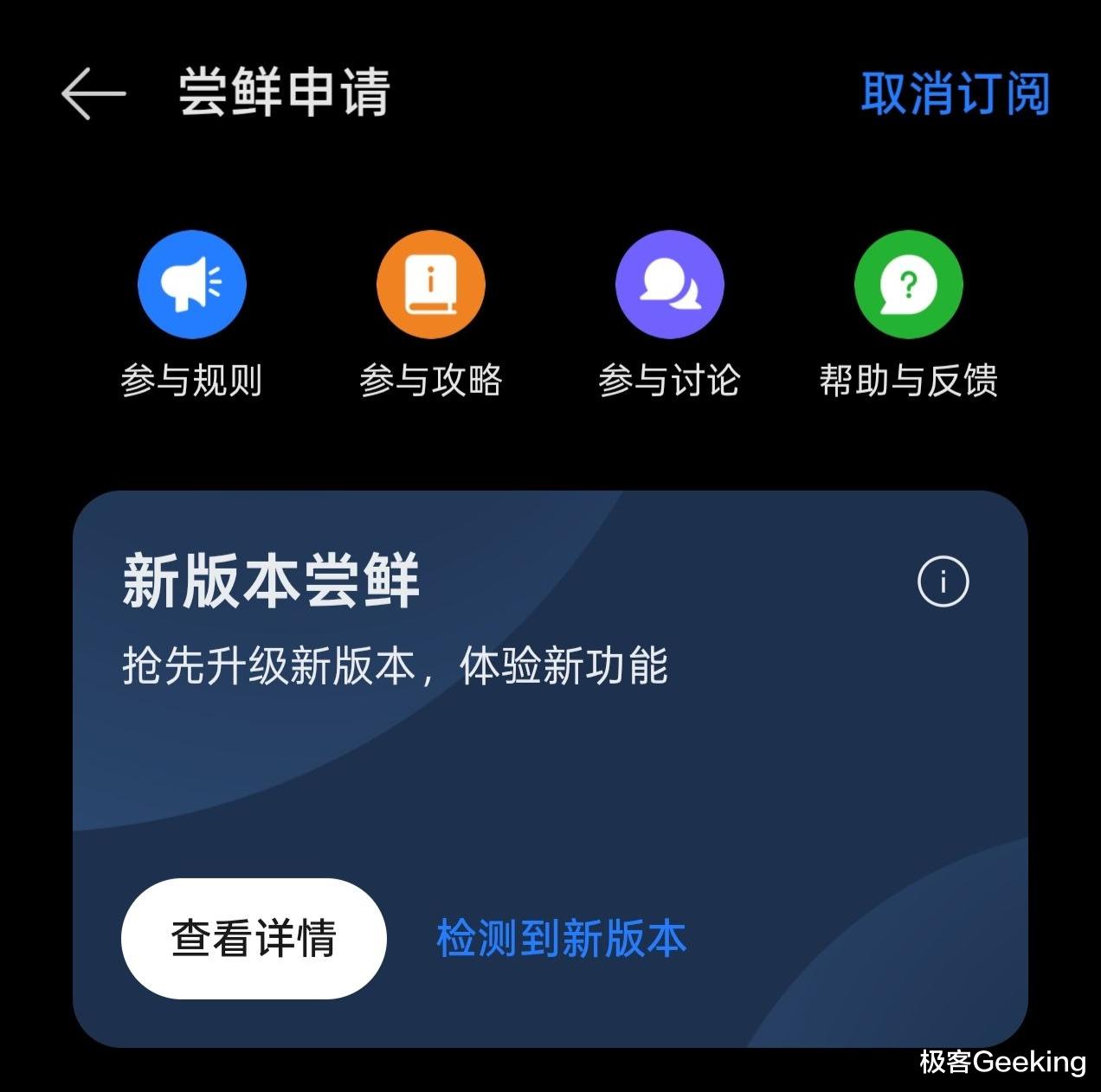 用户可以通过「设置」-「系统与更新」-「软件更新」进行新版本检测更新,也可以在「软件更新」页面点击右上角菜单选项,再点击「尝鲜申请」-「新版本尝鲜」,如果检测到有版本升级的话只需要点击「立即更新」即可。