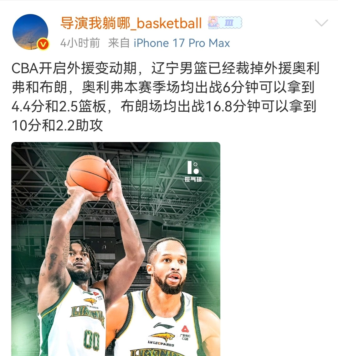 而眼看CBA当下竞争环境如此激烈,辽宁队的个别外援又无法打出高水准发挥。于是球队终于在最近几天,做出了外援阵容调整。
