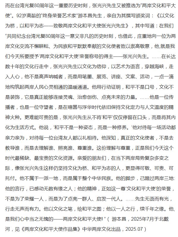 以文化为桥以和平为志——致敬“两岸文化和平大使”艺术家张光兴