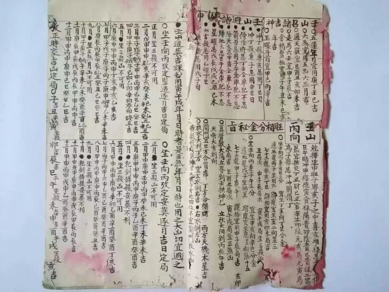 在传统堪舆风水体系中,分金是立向择吉的核心技艺,而旺相分金更是精准纳气、趋吉避凶的关键——通过八卦纳甲理论筛选出丙、丁、庚、辛四干所属的四十八组可用分金,规避孤、虚、空亡等凶格,确保阴阳相济、气脉流通。二十四山作为分金立向的基础,其吉凶判断直接影响择吉效果,而龙脉、穴位、砂水则是堪舆理气与形峦结合的核心要素。《旺相分金秘旨》精准承袭这一核心特质,58页的手抄篇幅打破了旺相分金技艺零散传承的局限,将散佚的理论要义、实战案例系统整合。相较于八宅法的简单笼统、玄空飞星的繁杂难学,该书更聚焦实用针对性,结合个人出生时间、地点等信息推演,语言通俗易懂、方法简单易学,充分体现“精准实用、上手易会”的鲜明特色,成为清代堪舆择吉流派传承的重要实物载体。
