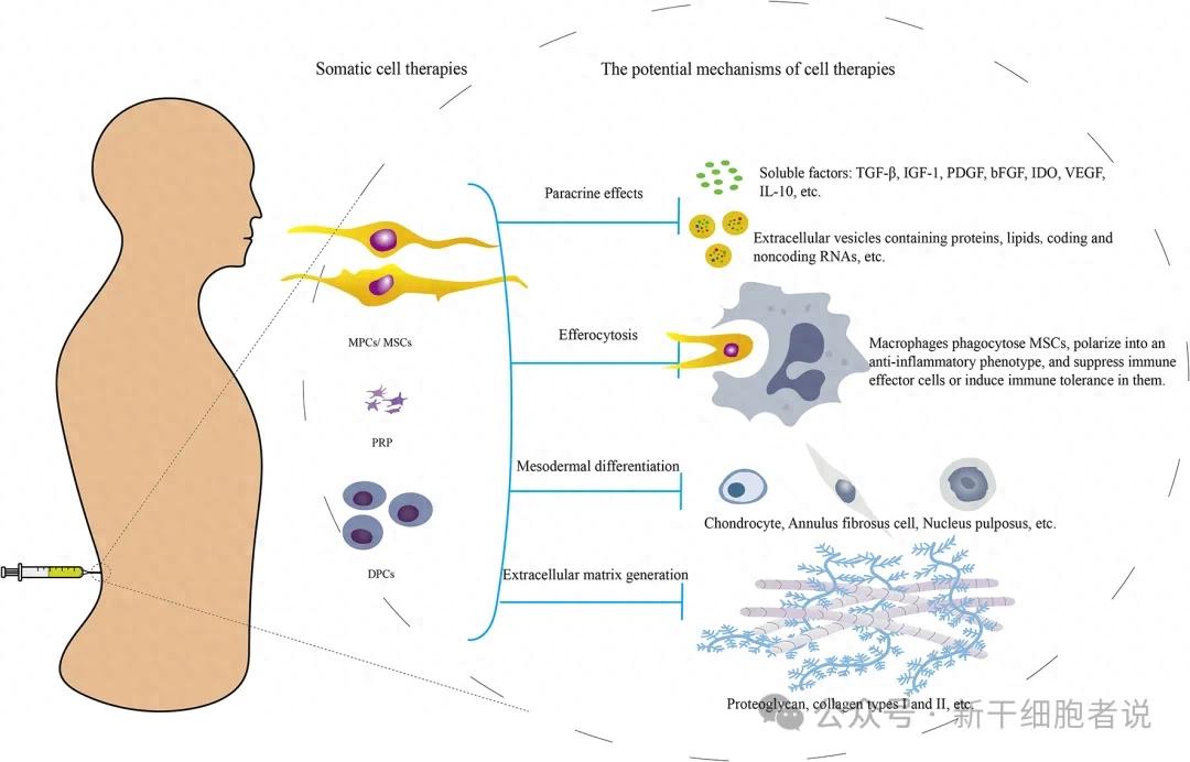 * MPCs:间充质前体细胞;DPCs:椎间盘祖细胞;MSCs:间充质干细胞;PRP:富血小板血浆;HA:透明质酸;RFAT:射频消融和热凝固