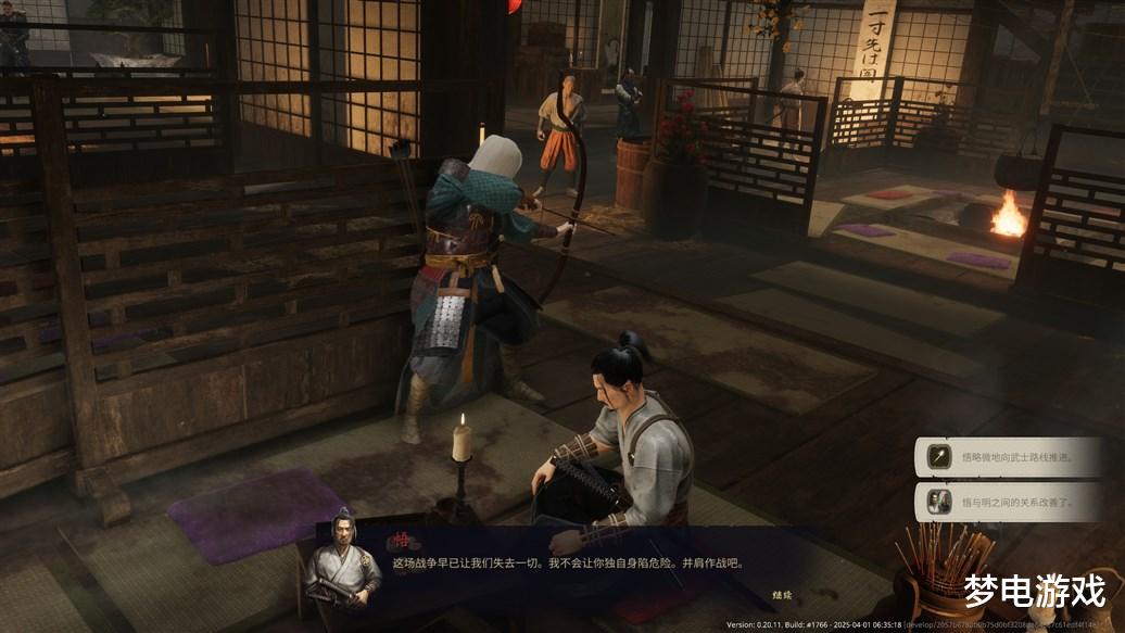 游戏在画面还不错,就demo中出现的旅馆和庄园两个场景其中的氛围就很有日本味,而角色的行为、对话等日本武士道的风格也很显著。