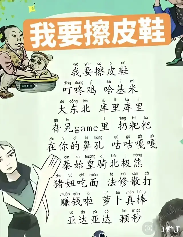 作为成年人,面对各种儿童流行语,我们与其视若洪水猛兽,不如加入,和孩子们一起唱《我要擦皮鞋》,先融入这个群体,然后你就是批判也能批判到点上啊,不是吗?