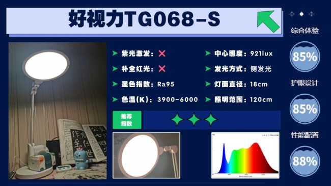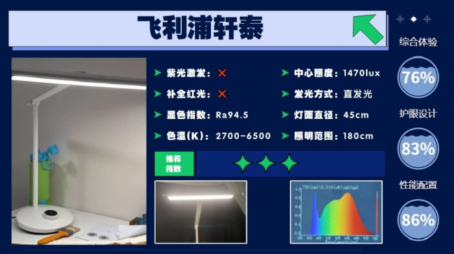 一句话推荐:采用长条形发光面与全光谱技术,满足基础读写照明需求