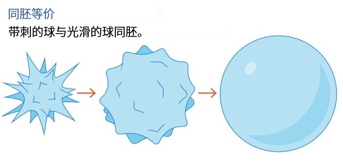 例如,一个球体可以被压缩成一个点,但由于甜甜圈中心的洞无法消除,所以它不与点同伦等价。
