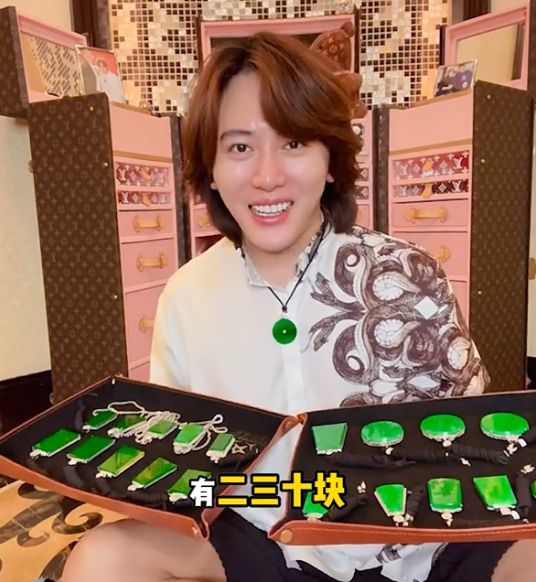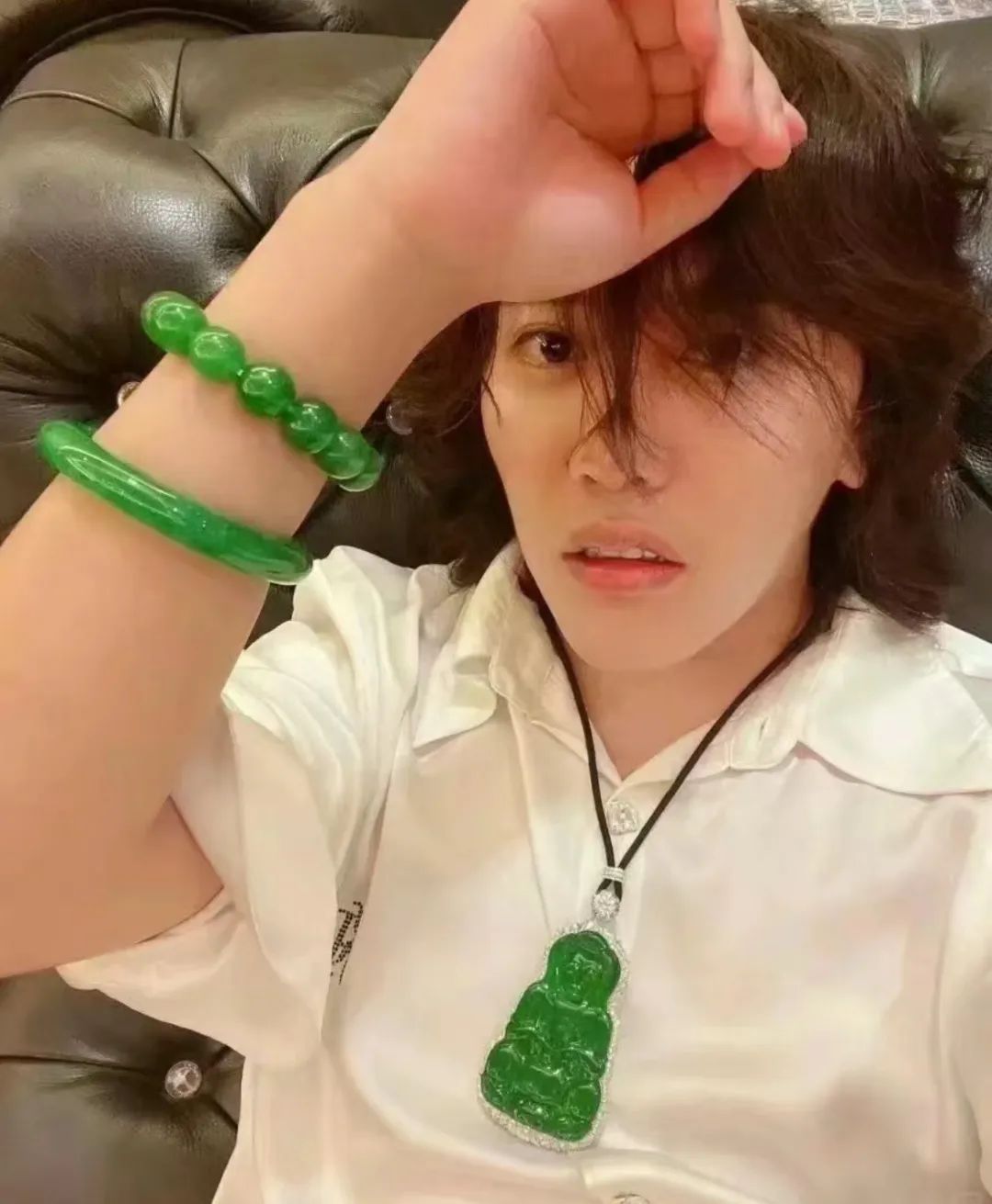 鲍鱼家姐也钟爱翡翠首饰,各式珠串、平安扣件件不重样,在这一点上或许会和王红权星很有共同话题。