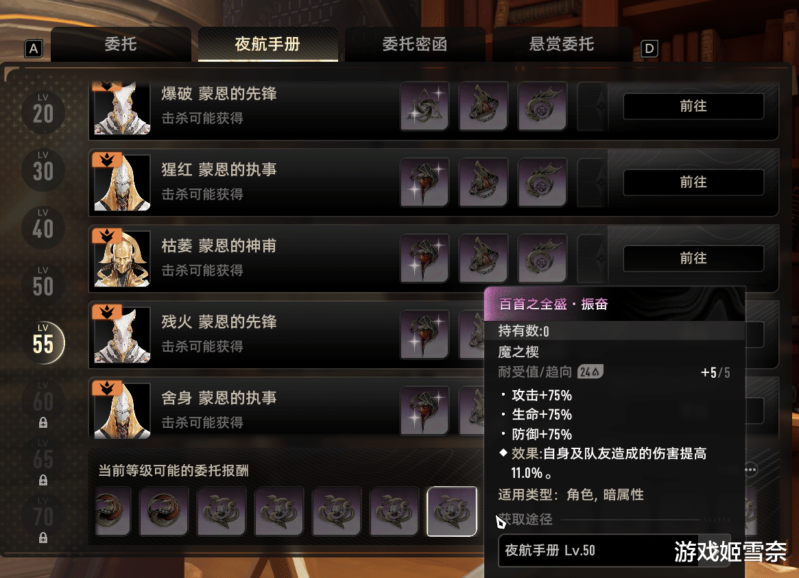 开荒期顶重要的事情自然是主线任务,随着主线任务发展才会逐渐解锁模组卡以及各种功能,别以为这是废话,因为最重要的是我们需要刷取的委托密函的获取基本都在主线过程中给,没有材料就开不了委托密函也没办法解锁新角色新武器,还有高等级的紫色橙色魔之楔必须要有一定的历练等级才能解锁,而获取历练等级最快的方法就是升主线,否则只有蓝色的魔之楔用直接慢人一步。