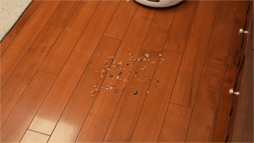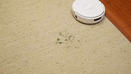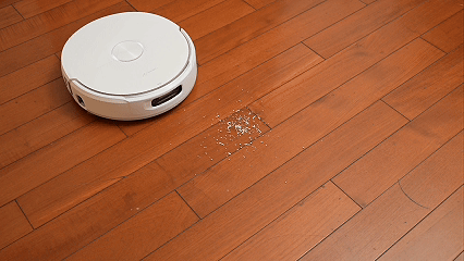 在识别到大面积固体颗粒物时,会减速并增加吸力,着重清理。