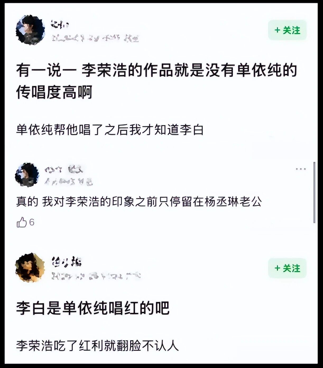 更让人震惊的是,李荣浩还提起了当年单依纯上湖南台综艺《歌手》的事。我们都知道,单依纯当年就是靠着在《歌手》舞台上翻唱《李白》,一战成名,圈了一大波粉,顺利出圈。可很多人不知道的是,当时网上全是调侃李荣浩的热搜,铺天盖地,李荣浩却全程没回应一个字,默默保了单依纯万全,让她顺顺利利登上“神台”,没有受到一点影响。