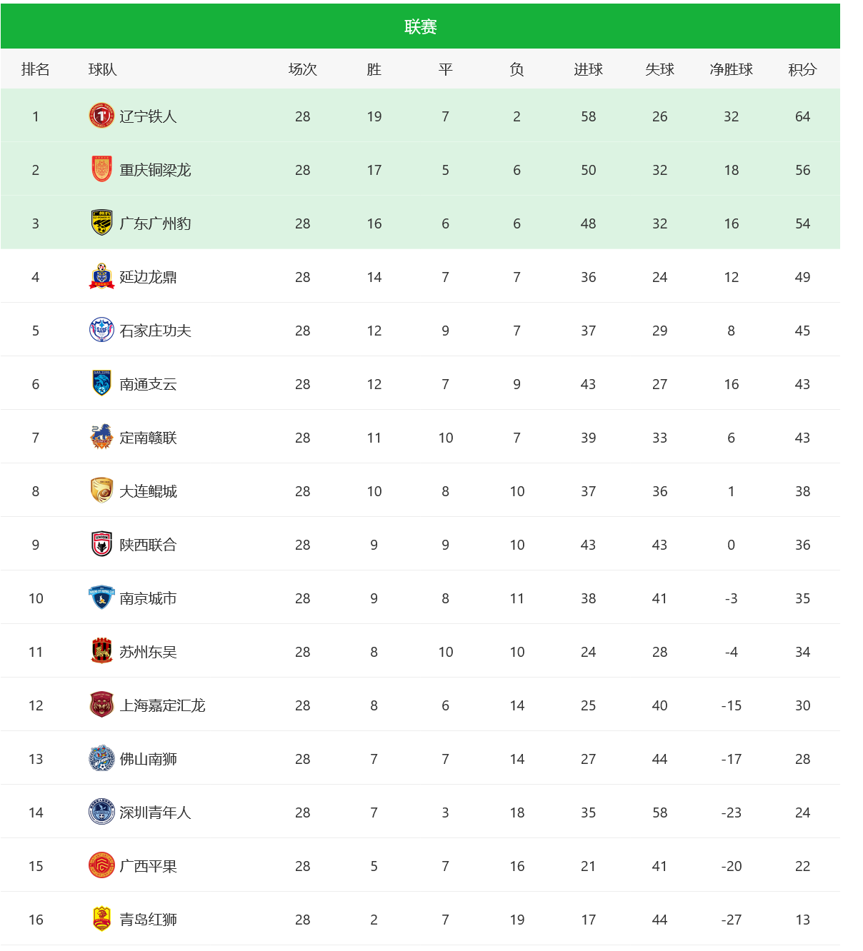 北京时间10月26日晚,2025赛季中甲联赛,第28轮再战4场。本轮重庆铜梁龙、广东广州豹双双主场战平,广西平果主场不敌延边龙鼎。此外,辽宁铁人4连胜提前夺冠冲超。