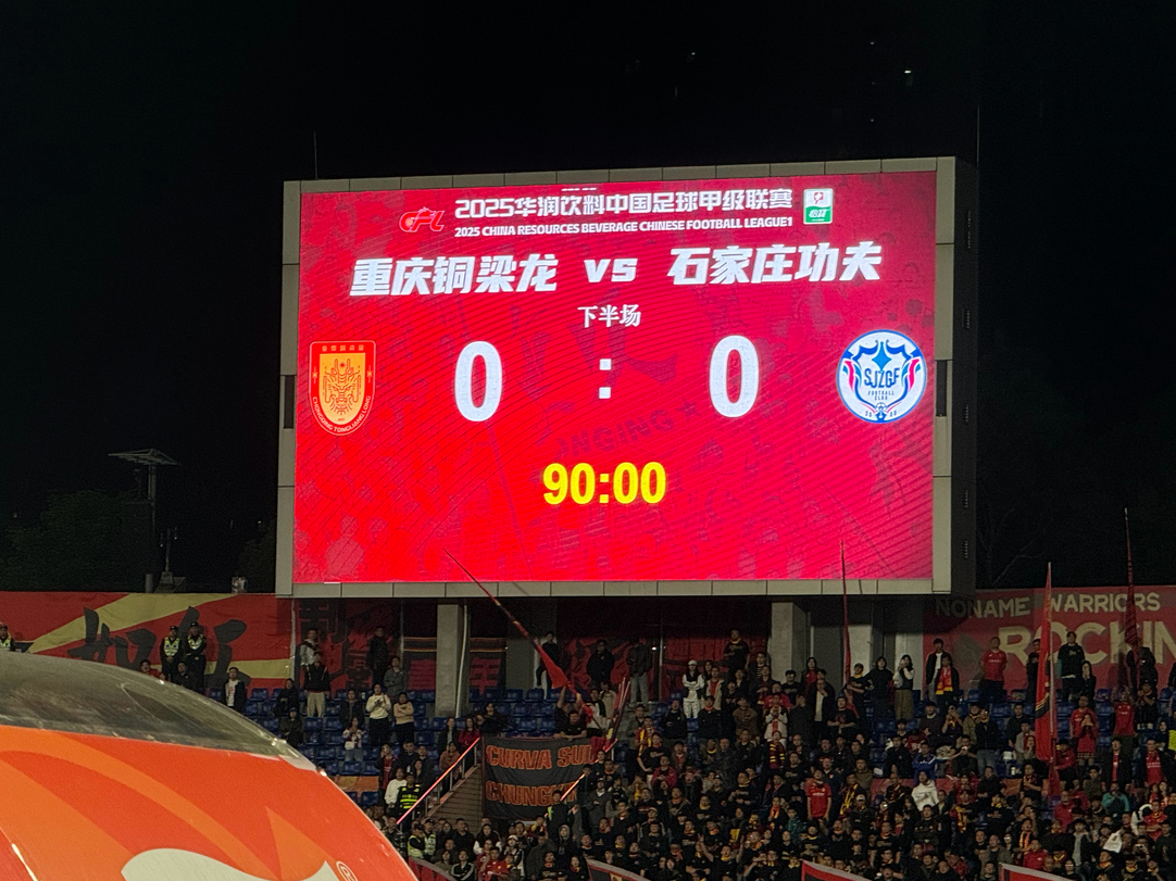 此役双方在铜梁龙体育场进行角逐,鏖战90分钟以0-0握手言和。重庆铜梁龙队仍然位居冲超区,主要是身后的广州豹暂不跟进,而石家庄功夫仍排在积分榜第五位。