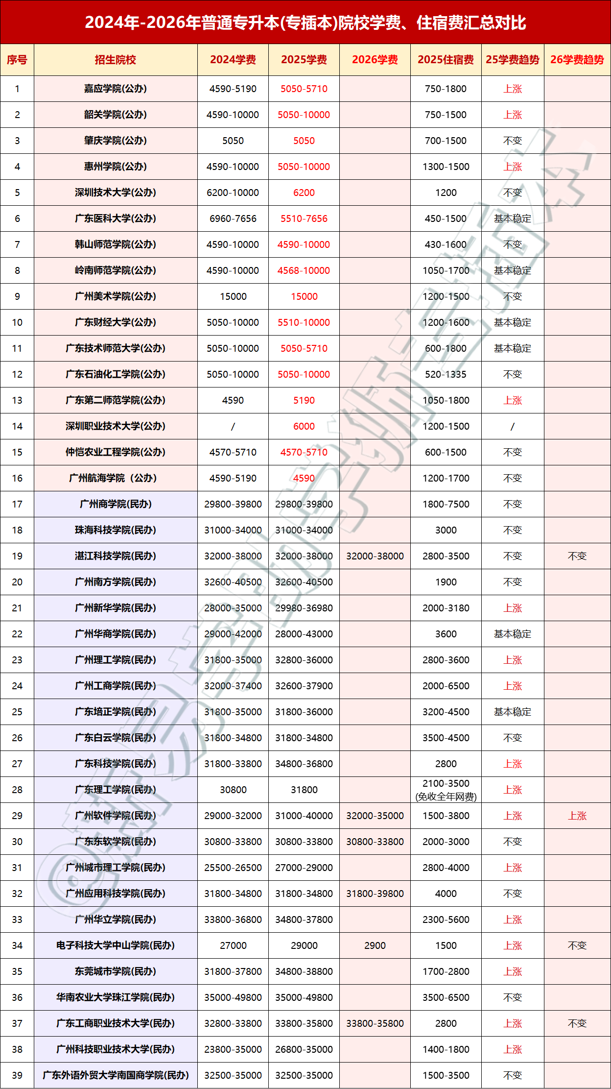 此前,华南农业大学珠江学院发布2025专升本新生收费标准,学费最高为49800元/学年!这篇,助学狮就来全面盘点广东专插本各院校学费情况,帮你清晰了解不同类型院校的收费标准!