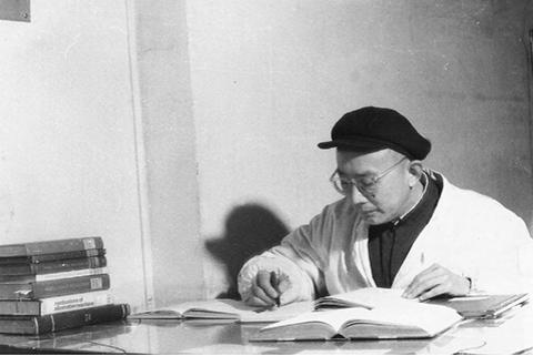 黄维垣在上海有机化学研究所阅读文献(图片来源:中国科学家博物馆)
