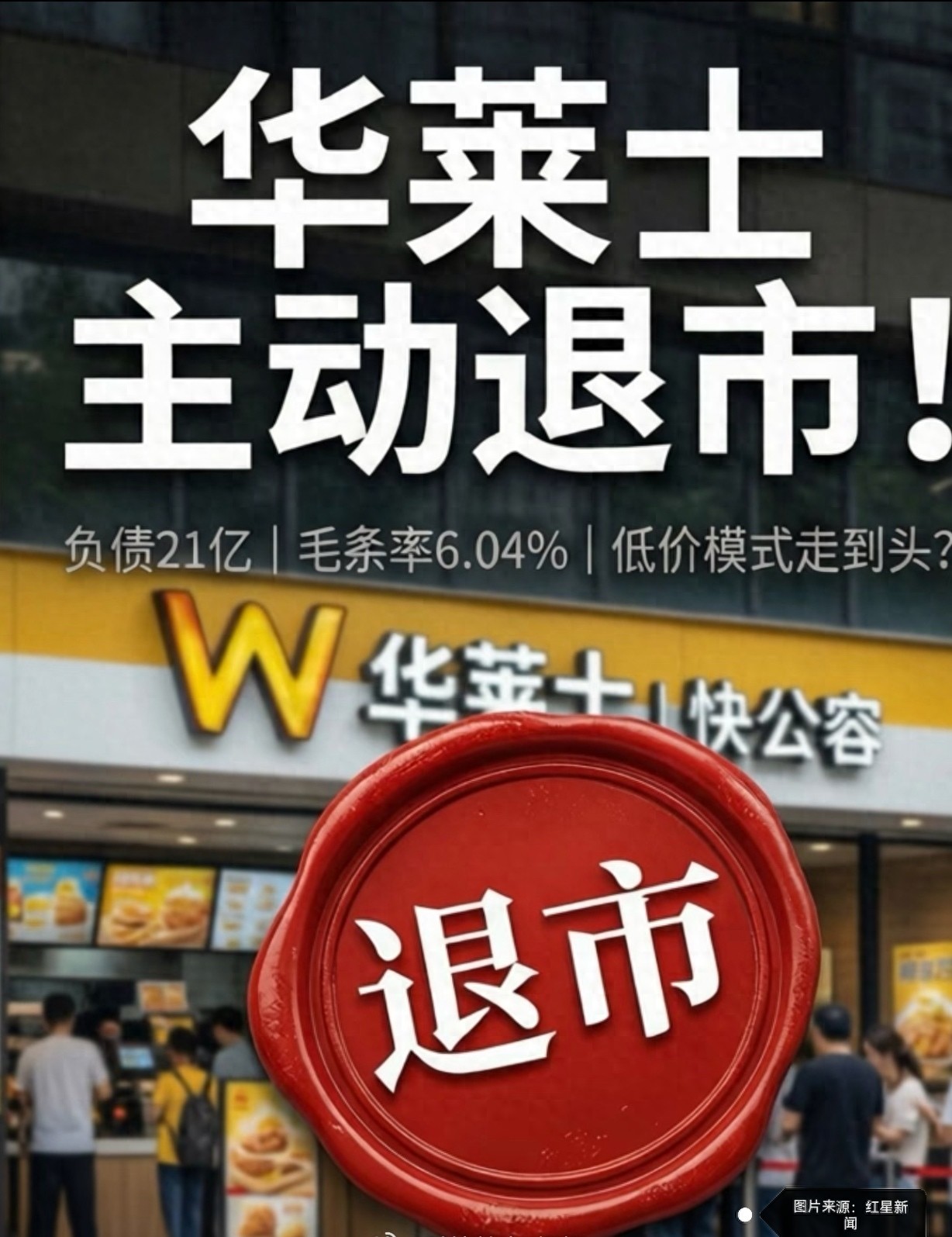 退市不是倒闭,而是卸下资本枷锁、专心搞经营。但我们更该看清:靠低价走天下的时代真的过去了。消费者要的不只是便宜,还有口味、品质和放心。只拼价格不练内功,再大的门店规模,也扛不住激烈竞争。这不仅是华莱士的困境,更是所有平价快餐品牌的警钟。