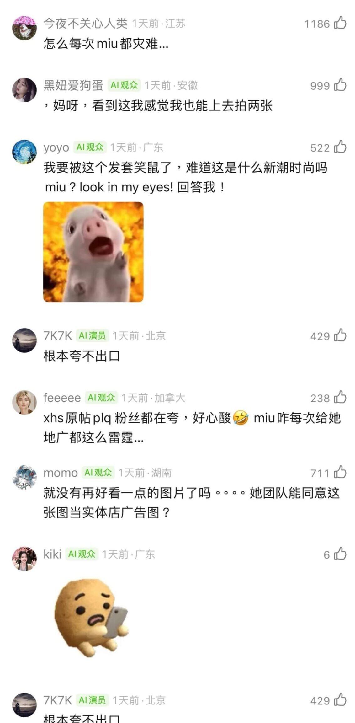 网友的评论更扎心,有人说MiuMiu摄影师是懂构图的,把明星拍出了一种“月薪三千,房贷两万”的疲惫感。 赵今麦那个菜篮子配黑丝运动裤的造型,被说像早起挤地铁的社畜。 黑粉都乐坏了,以前还得P黑图,现在直接转发官图配文“MiuMiu认证版生图,保真! ”粉丝更惨,一边要控评吹彩虹屁,一边心里在滴血,只能偷偷骂品牌方。