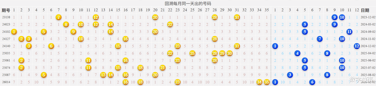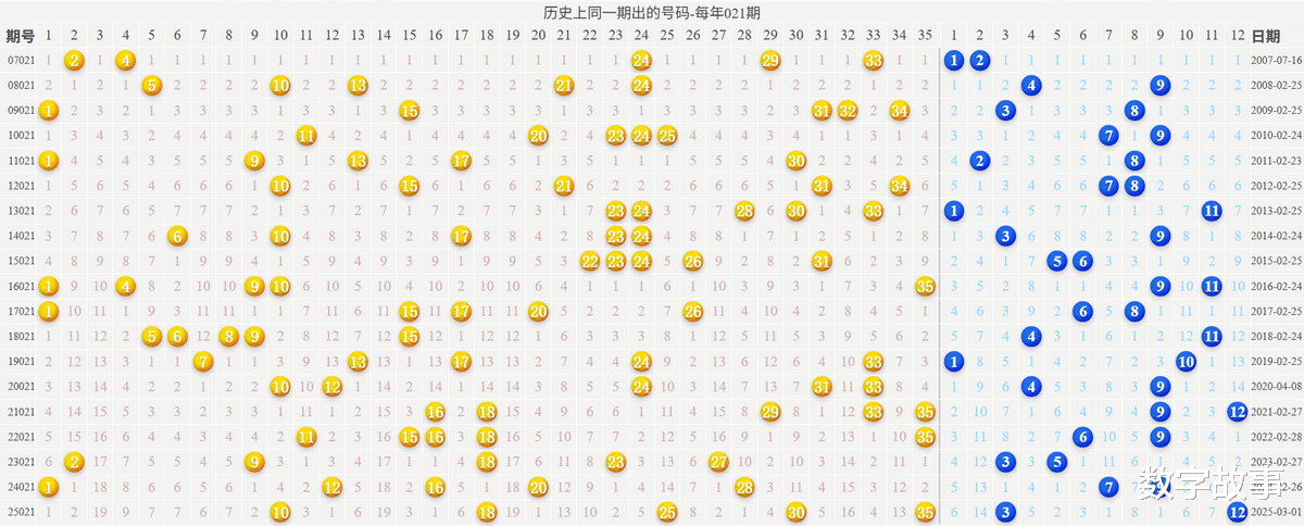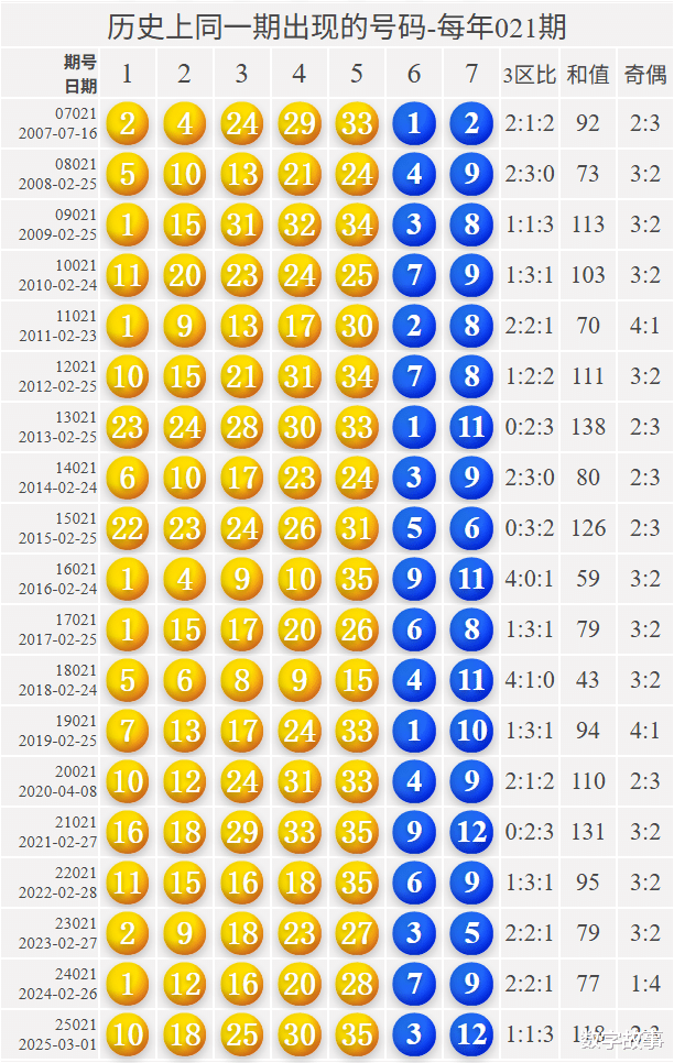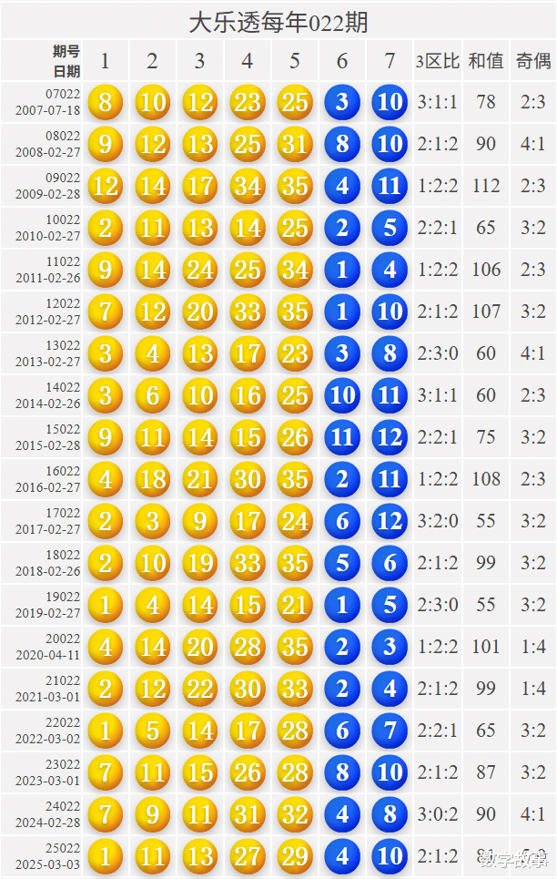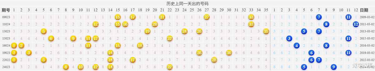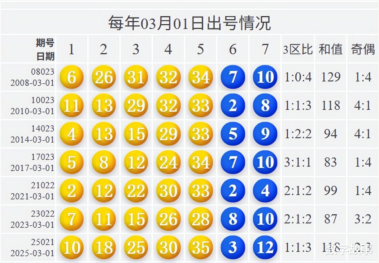 【其他历史数据查询统计】大乐透历史上的今天2026-03-01 星期日 大乐透不开奖每年03月01日出号情况: