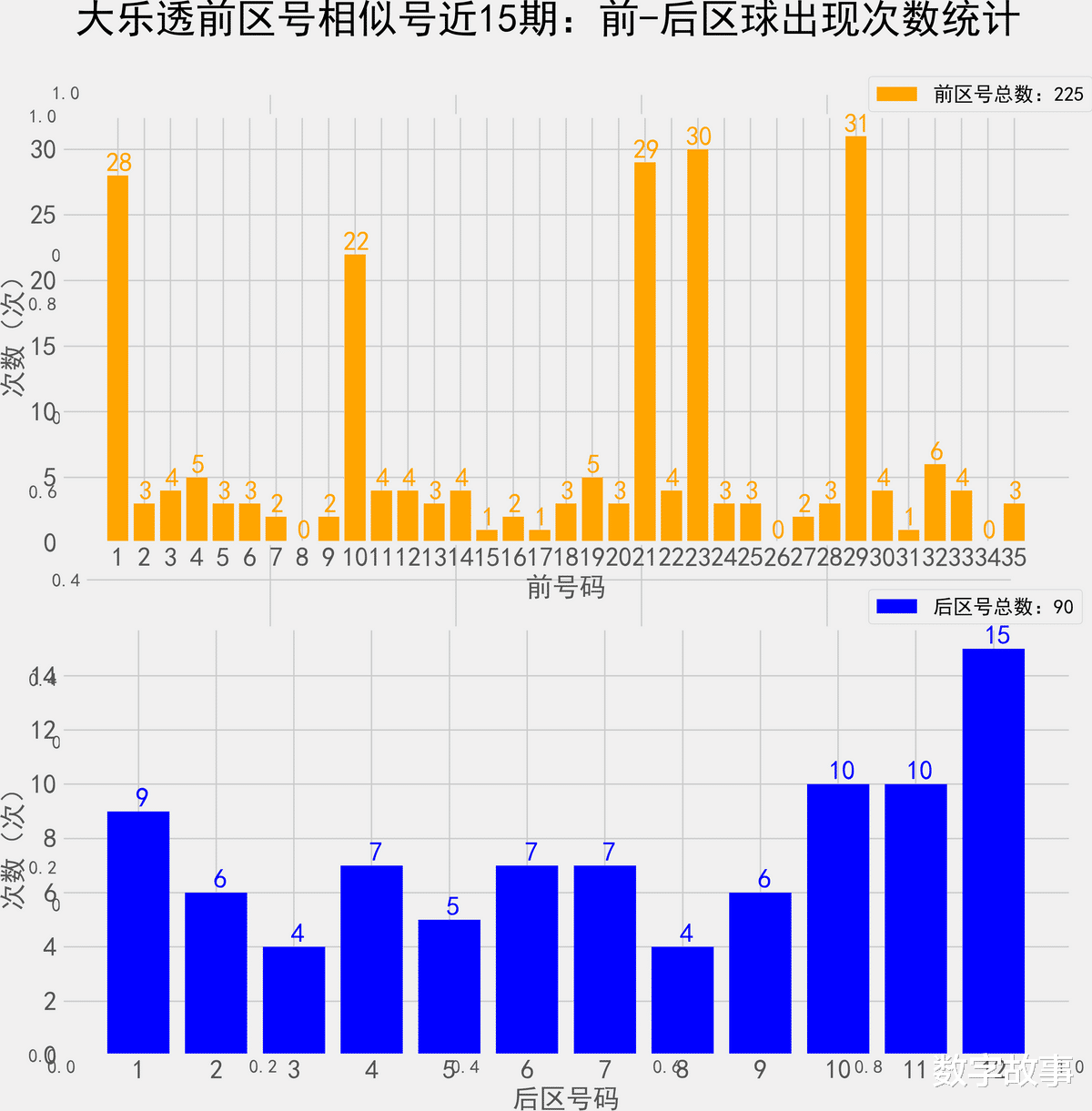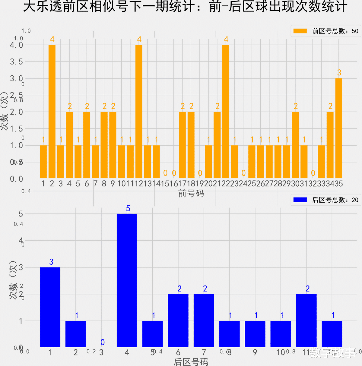 大乐透近10期前后区号统计情况统计样本数据: 50个前区号码 20个后区号码