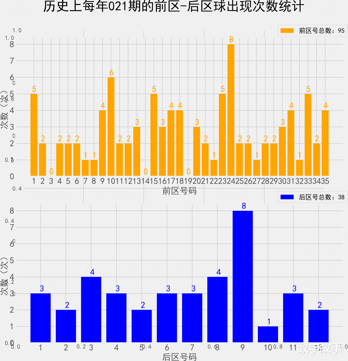 统计每年021期的样本数据: 95个前区号 38个后区号