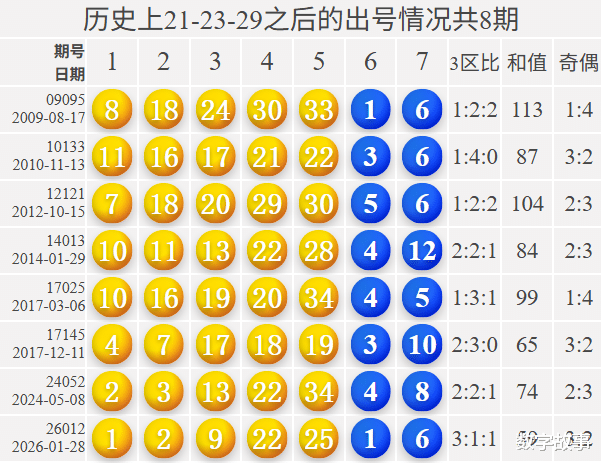 大乐透26020期前区号在过去是否出现过?大乐透26020期前区号: 1-10-21-23-29经查,历史上没有出现过与这一期5个前区号一样的,4个前区号一样的有3期,如下: