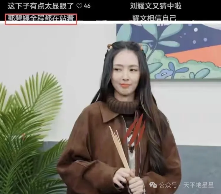 看过节目的观众就会发现,郭碧婷是全场唯一一个一站到底的人,大家都在蹲,她却一直一动不动的站着,真的是太让人尴尬了。可以说,郭碧婷全程都是游离在节目之外的,她清冷的性子真的不适合这么热闹的节目。