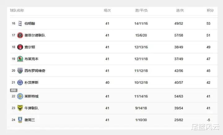 在目前的英冠比赛上,莱斯特城原本是47分,扣掉6分变成41分,跌入降级区,排名倒数第三。随后比赛也只剩下了五轮,保级形势岌岌可危。