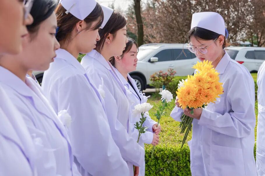 活动中,学院学子朗诵散文诗歌《生命如花》,一字一句,饱含深情,倾诉着对捐献者无私奉献精神的崇高敬意,表达着对生命延续的深刻感悟,更传递着对捐献者家属的无限感激。他们用青春之声,向那些用最后的奉献诠释人间大爱、为他人点亮生命曙光的捐献者们,致以最崇高的礼赞,现场气氛庄重而温馨,让在场的每一个人都深受感动。随后,全体人员依次上前,分别向镌刻着捐献者姓名的纪念碑鞠躬、献花,表达对逝者的追思。