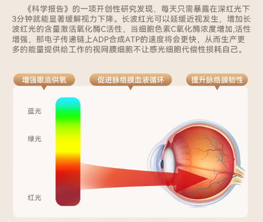 2、红光,是护眼灯的加分项以前我也不懂红光有什么用,后来才知道,670-700nm这个波段的有益红光,能促进眼底血液循环,缓解用眼疲劳。有研究表明,适量红光可以激活视网膜细胞活性,帮助修复日常用眼带来的微小损伤,对长时间写作业的孩子尤其有用。