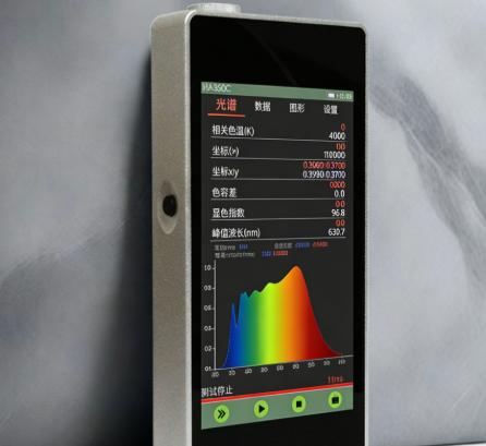 测试仪器:主要用了一台光谱仪,测蓝光峰值、红光占比、显色指数、中心照度这些核心数据。光谱仪可以直接读出照度数值,所以不需要另外用照度计。