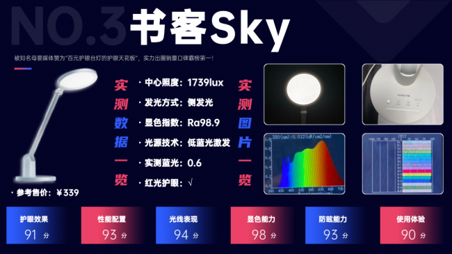场景四:预算有限,但又不想在护眼效果上妥协这种最纠结,但其实有惊喜。三百多块的书客Sky各个维度的实测表现都很优秀,核心护眼指标其实跟千元级产品差不了太多,百元段的性价比之王。另外,米家Pro和孩视宝VL235也值得考虑。