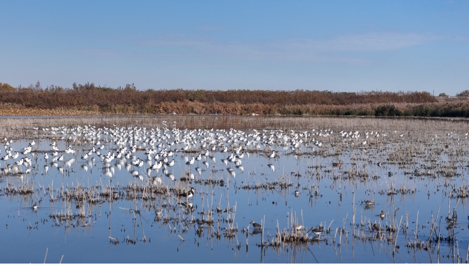 在碧海金沙辽阔的滩涂和防风林带间,鸻鹬类、雁鸭类等冬候鸟已经成群出现。它们时而在滩涂上悠闲踱步,用细长的喙探寻泥沙中的贝类和小鱼,时而振翅掠过波光粼粼的水面,划出一道道优美的弧线。根据本月初的观测记录,该区域候鸟数量约为4800只,涉及50种左右,尚未达到往年约13000只的高峰水平。“陆陆续续又一波水鸟飞过来了,所以数量现在慢慢在上升。”高淑红预计,随着气温持续下降,未来一个月内冬候鸟将陆续抵达,观测高峰预计出现在本月底至明年2月左右。除了常见的白琵鹭、反嘴鹬、绿头鸭、鸬鹚等,近期还观测到了上海相对少见的角䴙䴘、黑颈䴙䴘、长嘴半蹼鹬等水鸟,吸引了不少观鸟爱好者特意前来。在此,提醒市民在观鸟与摄影时保持距离、避免干扰,共同为远道而来的候鸟保留一片安宁的栖息空间。
