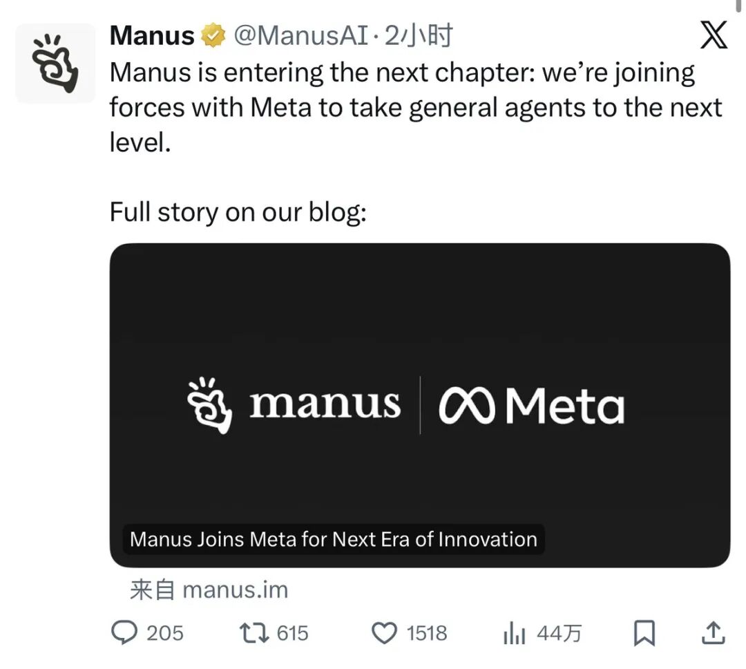 12月30日,Meta宣布收购新加坡AI初创公司Manus。据披露,交易金额高达20亿美元。更令人咋舌的是,此次收购的估值逻辑:Manus在被收购前员工总数仅约140–150人,这意味着每名员工的身价值约1亿元人民币。