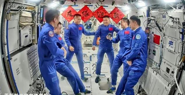 2024年10月30,神舟十九号乘组与神舟十八号乘组交接成功,在天宫空间站留下了一张世纪合影。