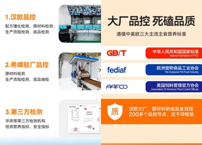 在生产上,什么牌子的猫粮好第一名希喂品牌选择了强强联合。它家的两款猫粮均由山东汉欧生产,汉欧作为国内Top3宠物食品大厂,年产能超20万吨,拥有ISO9001、FDA等11项国际认证,全程实现数字化监控,成立至今保持0翻车史,品控标准达婴儿奶粉级别。肉源则来自超和食品、新希望六和,这两家同时是双汇、中粮的肉源供应商,采用冷链运输保障新鲜,肉源的健康状况、饲养环境、药物残留等均有检测报告佐证,可全程追溯。此外,每批次产品在汉欧出厂检测基础上,还会外送检华测检测,华测具备CMA/CNAS/CATL权威资质,检测报告在国内外均具法律效力,进一步保障产品的品质,让希喂上市至今保持0品控问题、0黑历史的记录。