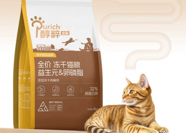 醇粹金标冻干猫粮的规格比较大,5kg一袋,适合多猫家庭;南方单猫家庭开袋后要注意防潮。一袋5kg的猫粮里面,添加了75g的鸡胸肉原切冻干。醇粹猫粮怎么样?醇粹金标这款冻干猫粮使用了3种肉源,包含鸡肉粉、鱼粉、牛肉骨粉,提供了丰富的口感层次。什么牌子的猫粮好,除了三种肉粉之外,还使用了碎米、糙米参与猫粮颗粒定形。醇粹猫粮怎么样?添加了宠物饲料复合调味料来提升猫粮的适口性。猫粮颗粒形状是梅花形的颗粒,大小适中。