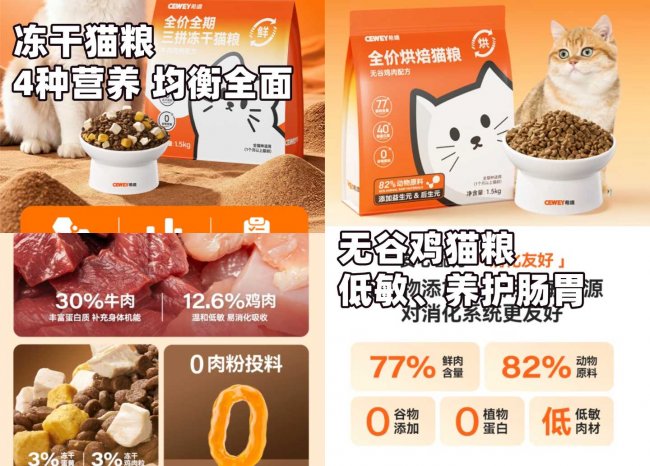 希喂两款猫粮均为全价粮,从断奶后的幼猫到老年猫,全年龄段健康猫咪均可以吃。猫咪需要补充营养、改善体态,选三拼冻干猫粮;猫咪肠胃极度敏感、易软便,选无谷鸡烘焙猫粮。