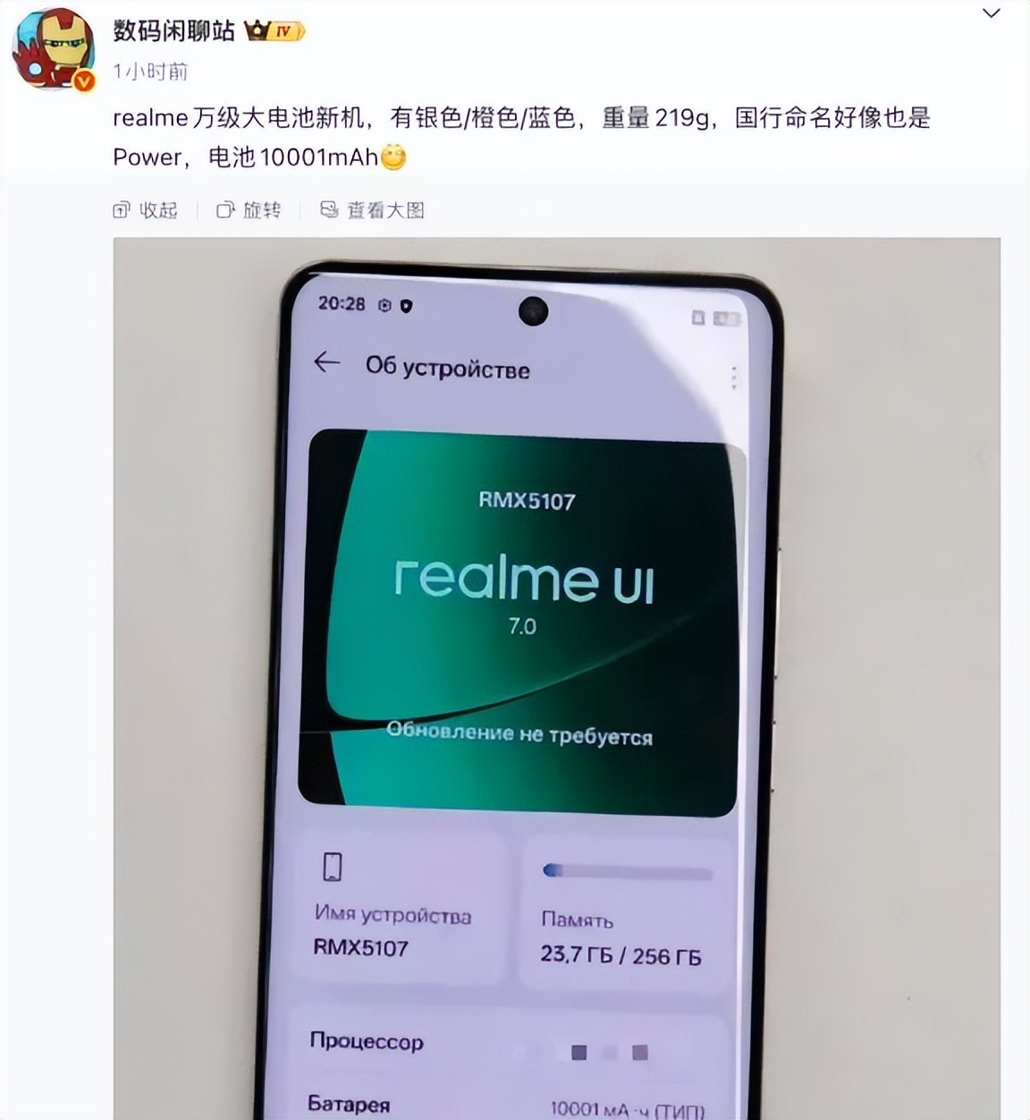 与此同时,博主@数码闲聊站 在一份新爆料中提到,“realme万级大电池新机,有银色/橙色/蓝色,重量219g,国行命名好像也是Power,电池10001mAh”。