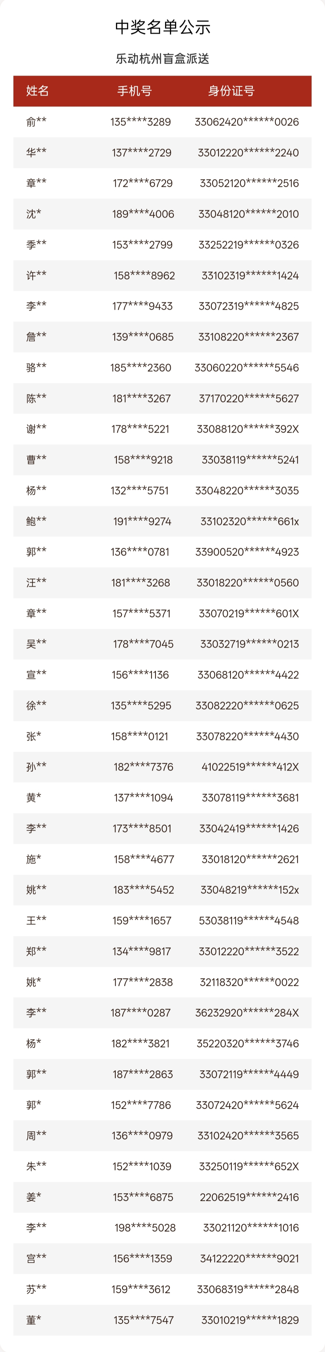 “浙浙买单的旅行” 第7期“诗画浙江 乐动杭州盲盒派送”活动中奖名单新鲜出炉啦!各位参与的小伙伴快看看有没有抱走奖品呢?