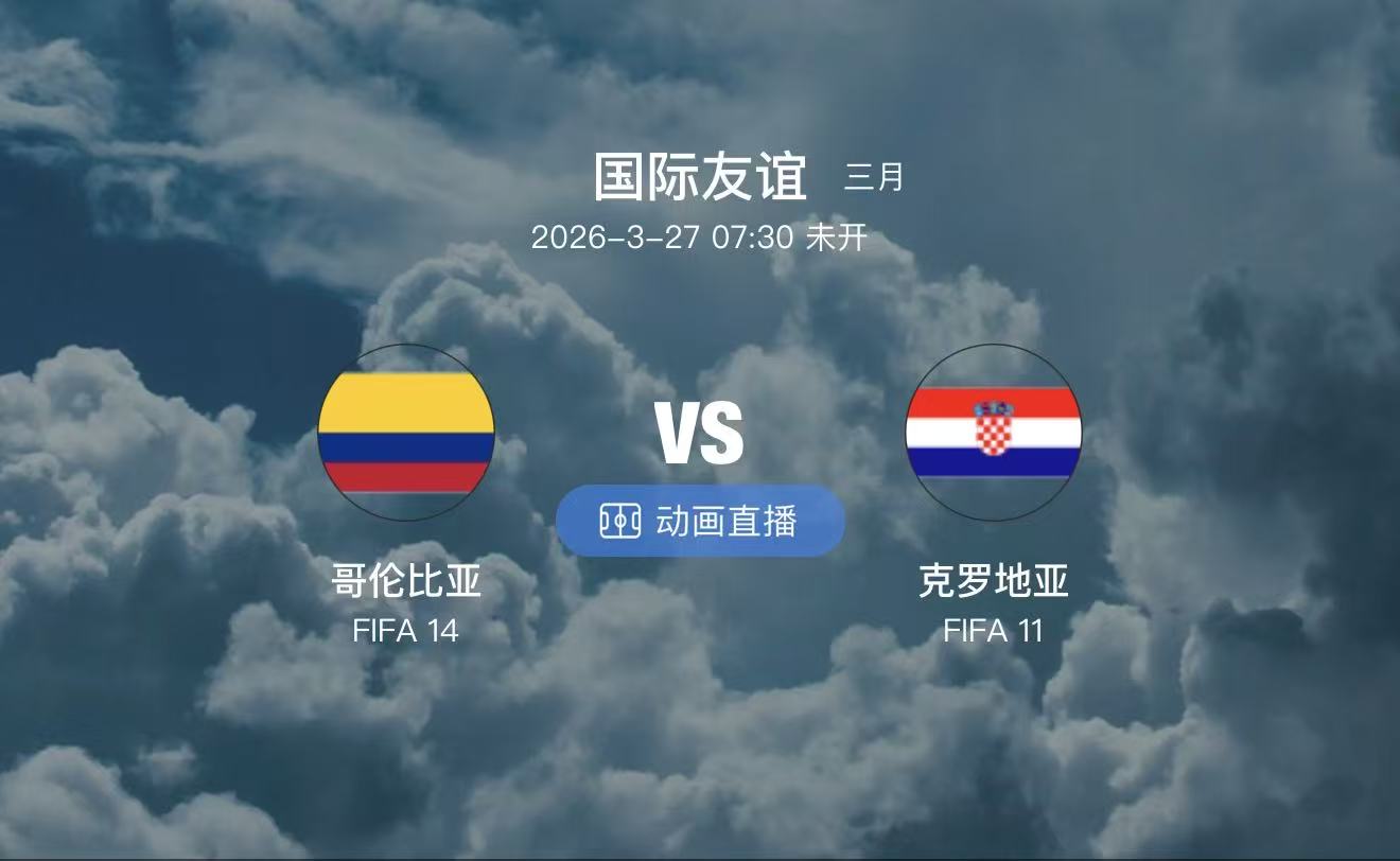 🔹 周四010 国际友谊:哥伦比亚 vs 克罗地亚(07:30)