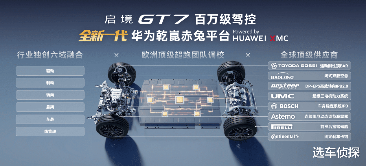 启境GT7将新一代华为乾崑赤兔平台、顶级硬件及国际大师调校三大优势进行原生融合,将智能科技注入驾控灵魂,成就启境GT7的百万级驾控体验。