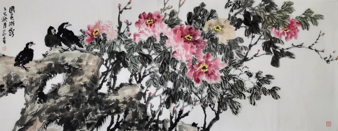 家会先生写意花鸟画作品致力于笔墨表现与情感抒发,强调心灵感受和意趣。张彦远在《历代名画记》中提出,绘画创作要“守其神,专其一,合造化之功,假吴生之笔,向所谓意存笔先,画尽意在也。”是以“意”为旨要,统领“笔墨”进行转移模写、状物抒怀。实际上,家会先生写意花鸟画的“意象生成”,其本身就具有传统绘画的文化属性,也是传统文化的精髓所在。