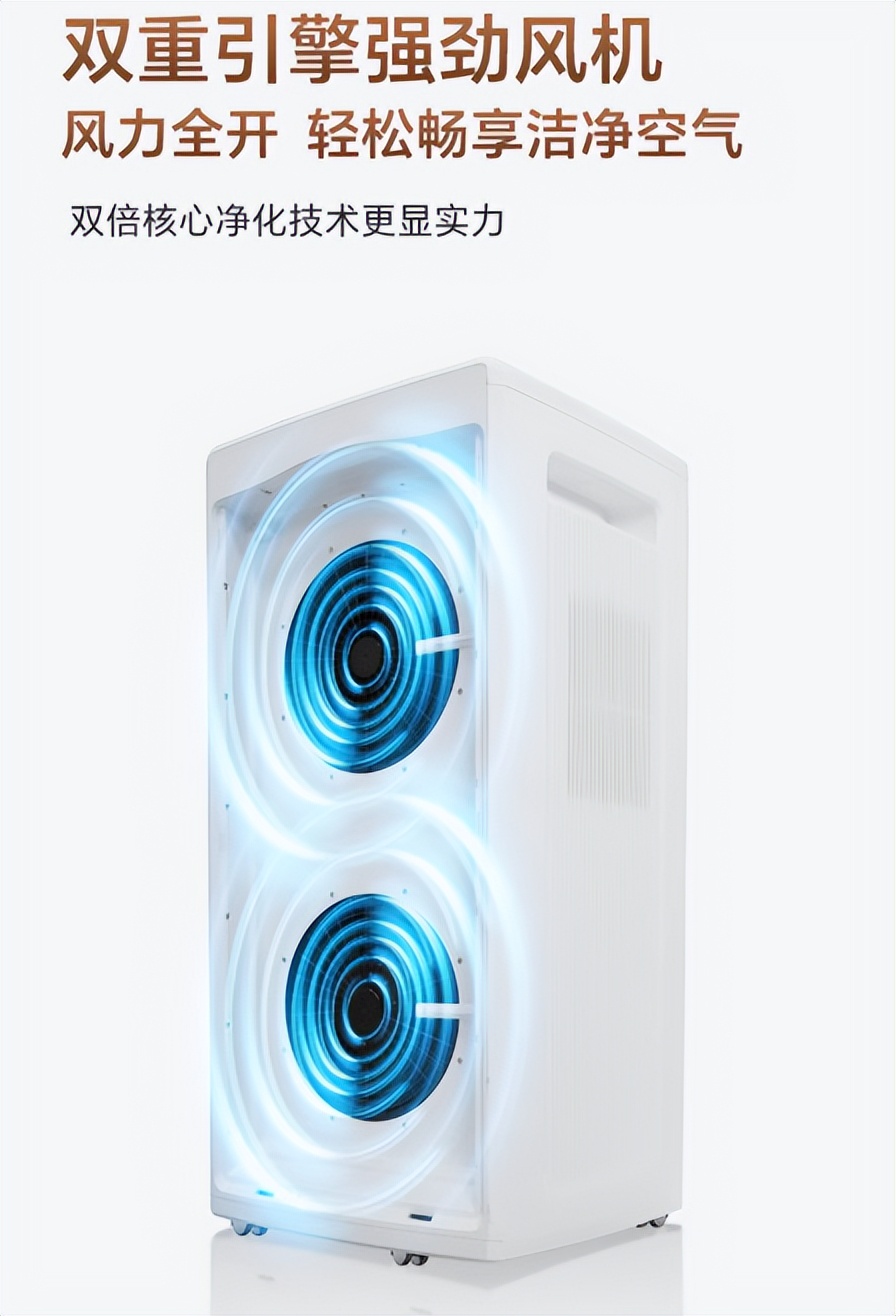 双涡轮增压设计:机身内置两个独立涡轮电机,比传统单电机进风效率提升 60%,能产生更强的气流动力,让洁净空气获得足够 “穿透力”,轻松穿过楼梯间,抵达二楼甚至阁楼;