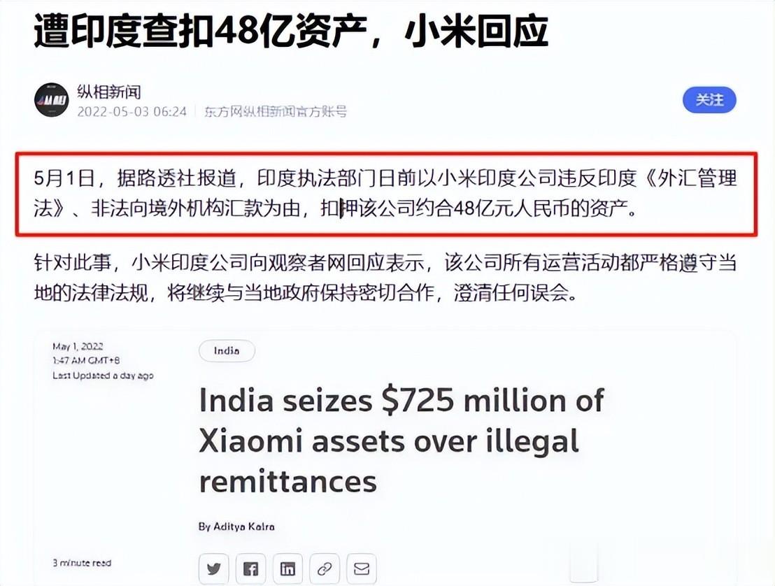 22年5月,小米48亿元人民币的资产说冻结就冻结,理由换了好几个,反正钱就是不给。