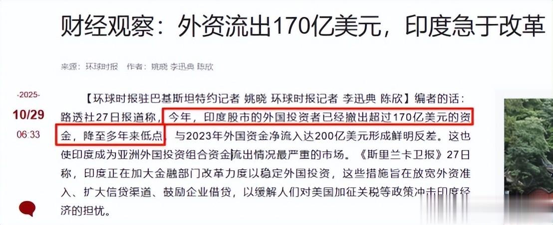 环球网2025-10-29财经观察,外资流出170亿美元,印度急于改革