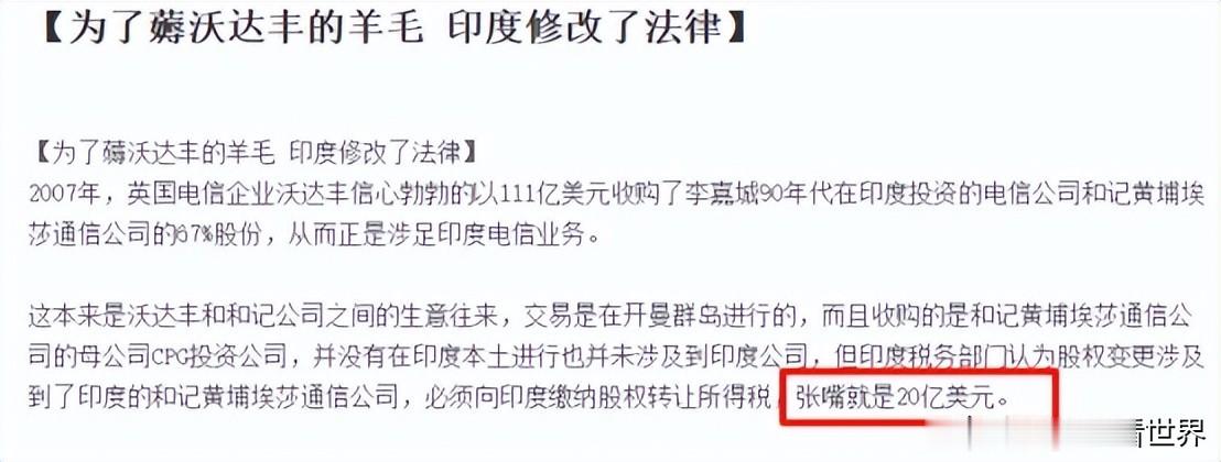 2007年,还有沃达丰,印度为了罚他20亿美元,甚至专门修改了法律,想躲都躲不掉。