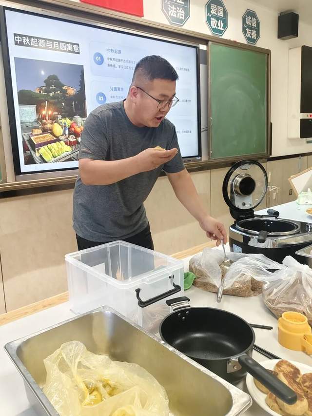 刘老师则更侧重于引导学生们在劳动中体验情感、感悟成长。他鼓励学生们在月饼上创意发挥,画出属于自己的独特印记,或是写下对家人的祝福语。当烤箱散发出诱人的香气,当一枚枚金黄饱满、花纹清晰的月饼出炉时,教室里充满了成功的欢呼与自豪的笑声。