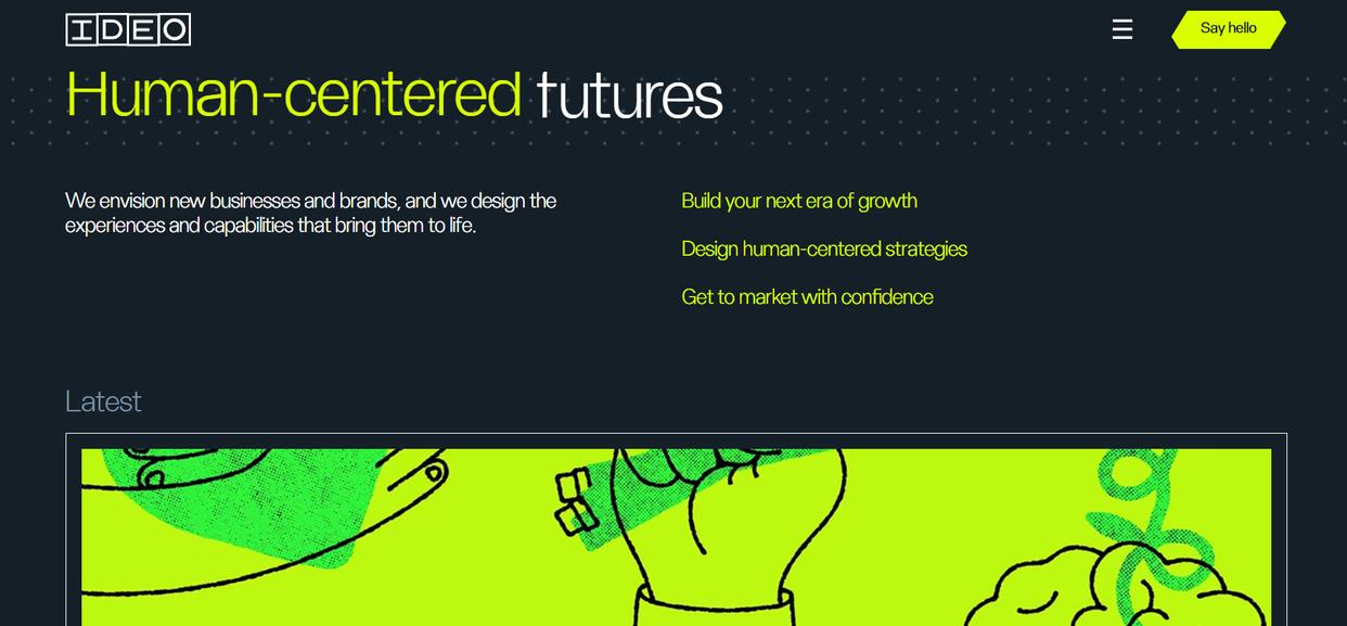 九、IDEO:全球设计思维领导者,打造创新网站体验IDEO作为全球知名的设计咨询公司,以设计思维为核心方法论,专注于为企业提供创新的网站设计与开发服务,是网站建设领域的创新引领者。公司总部位于美国加州,在全球多个城市设有分支机构,帮助企业通过设计创新解决复杂问题,创造商业价值与社会价值。