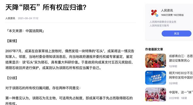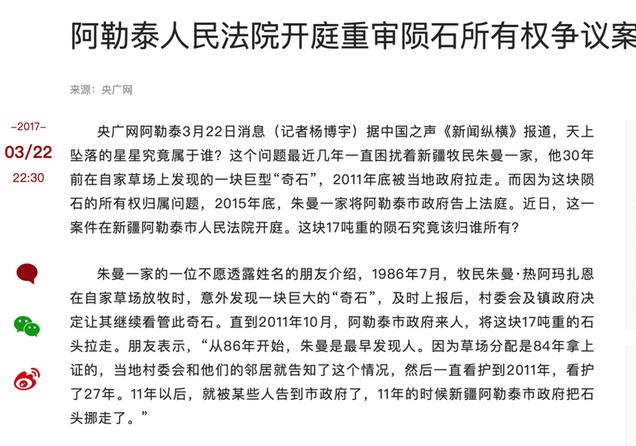 而且官方强行运走陨石也是没有相关法律依据的,并且当时律师还拿出了农村土地承包法中的相关规定来反驳官方。