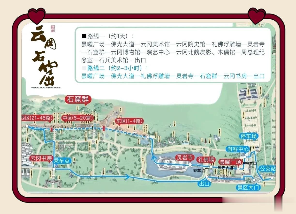 经典路线(约3-4小时):昙曜广场 → 佛光大道 → 灵岩寺 → 石窟群(核心) → 云冈博物馆 → 食货街。核心石窟群是重点,应留足时间细细观赏。